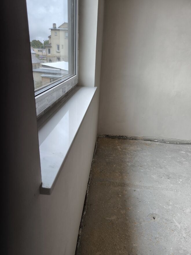 -Tynki gipsowe oraz kamienne parapety wewnętrzne w kolorze białym